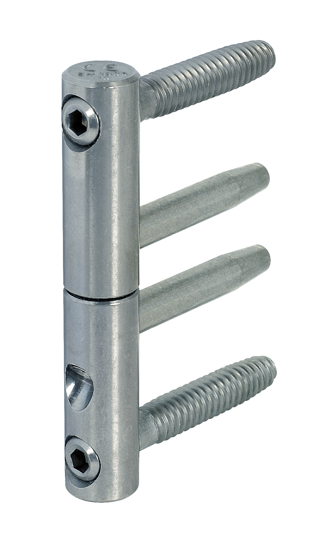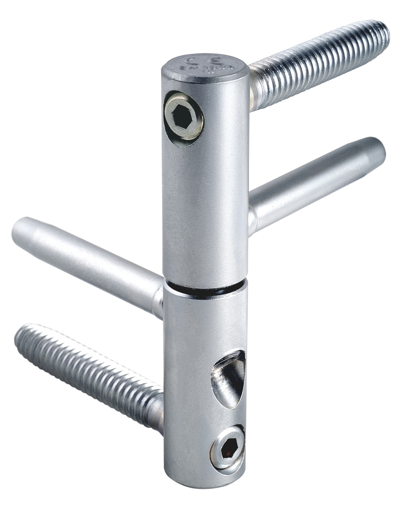 Cerniera registrabile realizzata in acciaio stampato. Adatta anche a porte tagliafuoco e portefinestre e finestre pesanti. Il perno cerniera è in acciaio stampato con camicia autolubrificante e antiossidante e sfera girevole in acciaio temperato. Cerniera certificata con marchio CE secondo normativa EN 1935 ed è quindi adatta per l'utilizzo su porte tagliafumo e tagliafuoco.