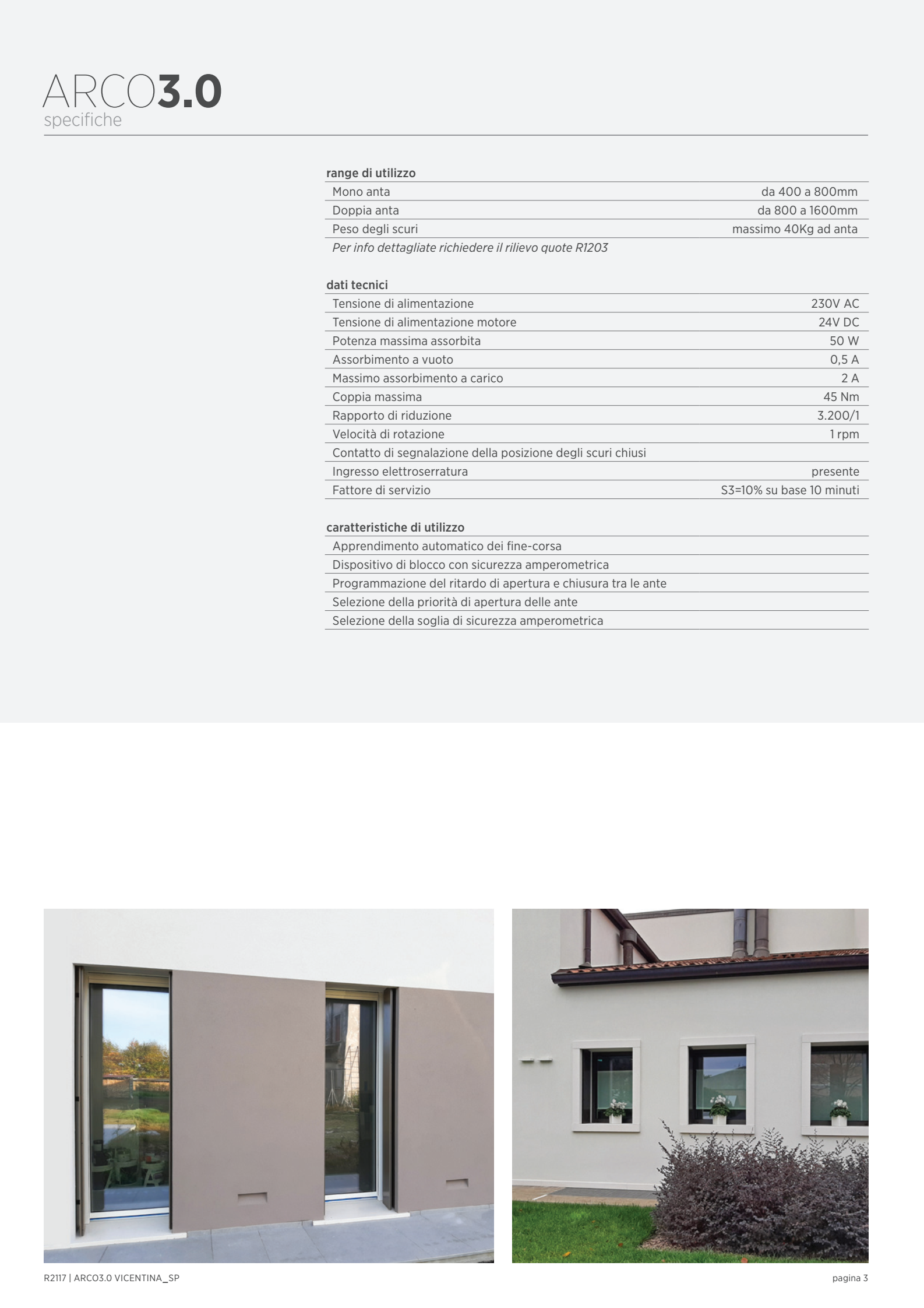 ANTAMATIC SIR - Kit Motore ARCO 3.0 ad incasso per anta alla vicentina kit per scuro anta doppia - luce min - max 800 - 1600 - peso max kg 40