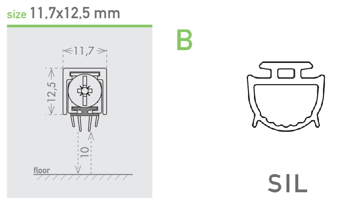 CCE - Parafreddo SMALL PULS per porte battenti da incasso - dimensioni 1030 - l. min 880 - larghezza 11,7 - altezza 12,5