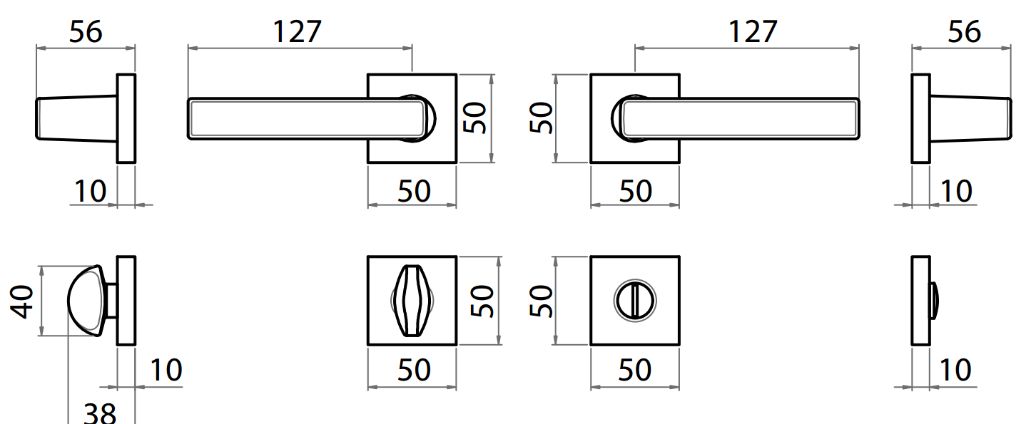 Parent: Maniglia coppia con rosette e bocchette quadre wc con intaglio