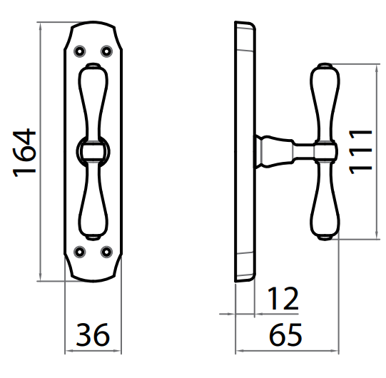 Parent: Maniglia coppia con rosette e bocchette ovali foro yale