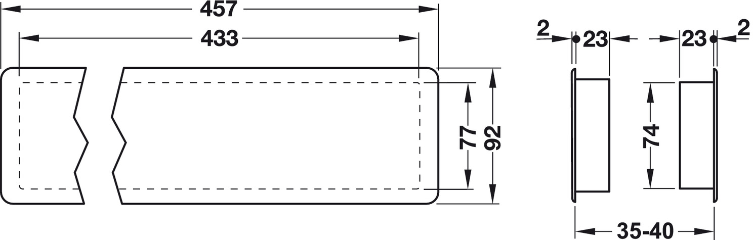 | 457 x 92 | SPESSORE PORTA 35 - 40 |