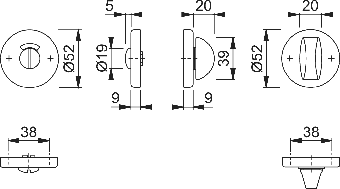 Parent: Chiavistello/nottolino tondo libero/occupato con intaglio e indicatore