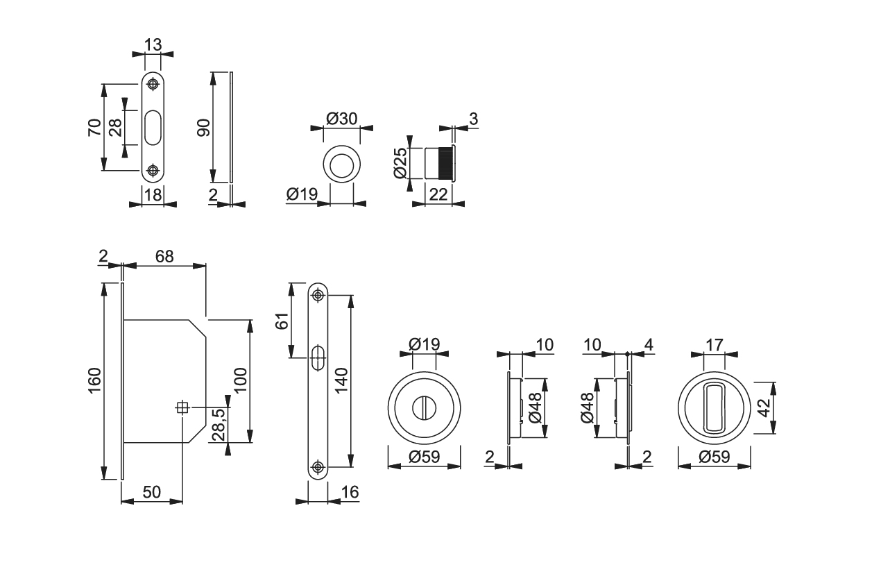 Parent: Maniglia da incasso tonda con serratura e50 chiavistello intaglio e maniglietta di trascinamento