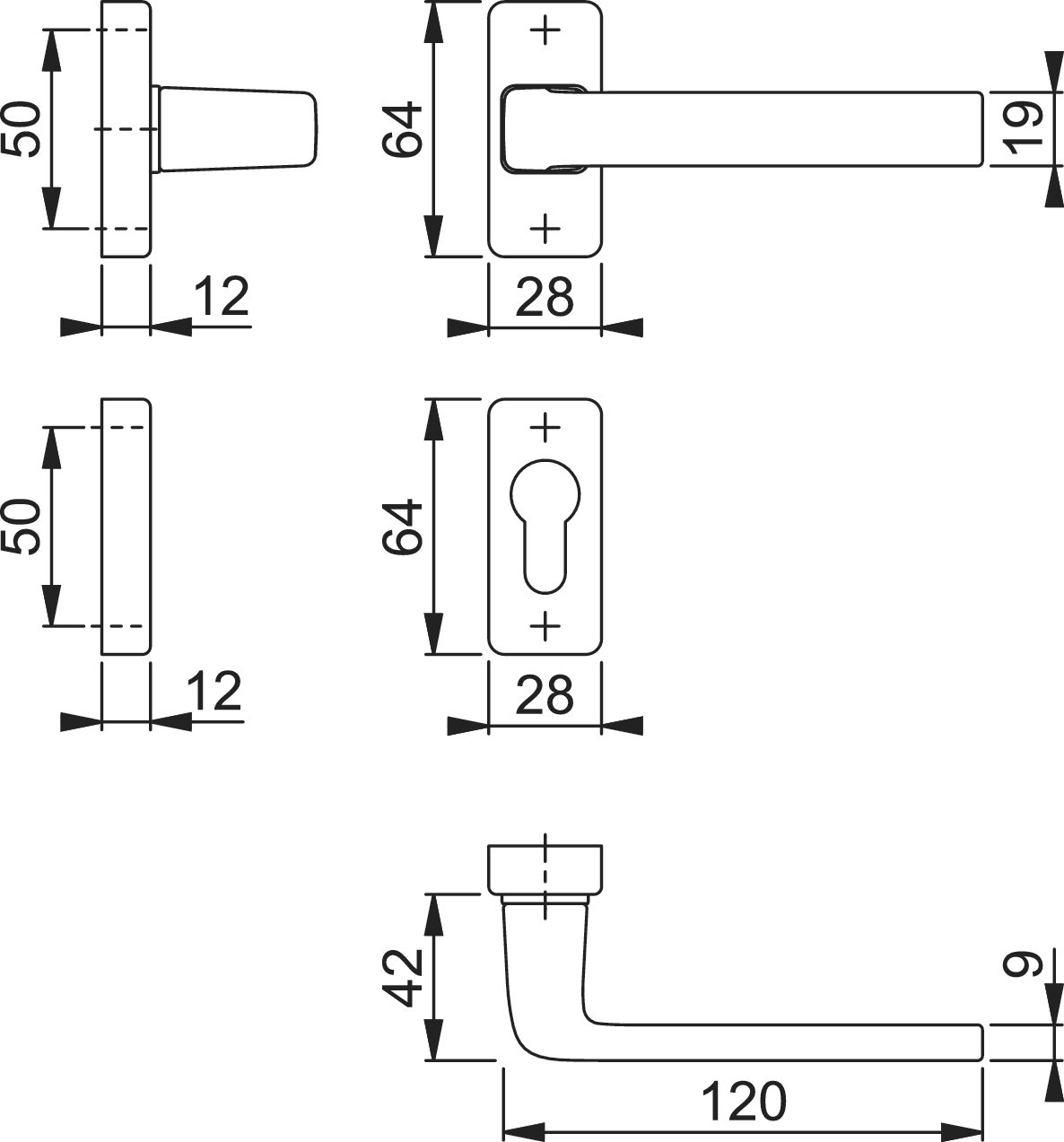 Parent: Maniglia coppia con rosette e bocchette rettangolari foro yale