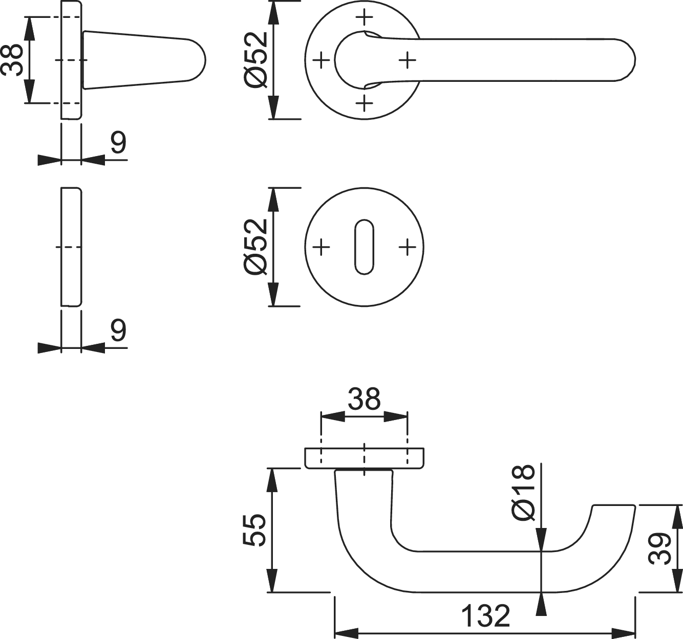 Parent: Maniglia coppia con rosette e bocchette tonde foro patent