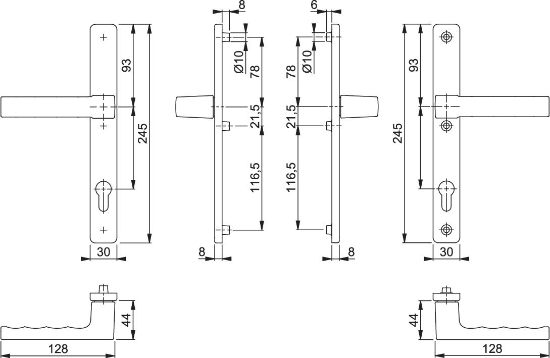 HOPPE - Maniglia TOULON coppia con placca foro yale - mat. ALLUMINIO - col. F1 ARGENTO