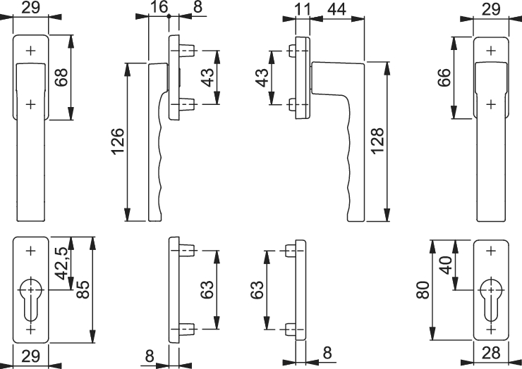 HOPPE - Martellina TOULON dk passante con bocchetta ovale yale - mat. ALLUMINIO - col. F1 ARGENTO