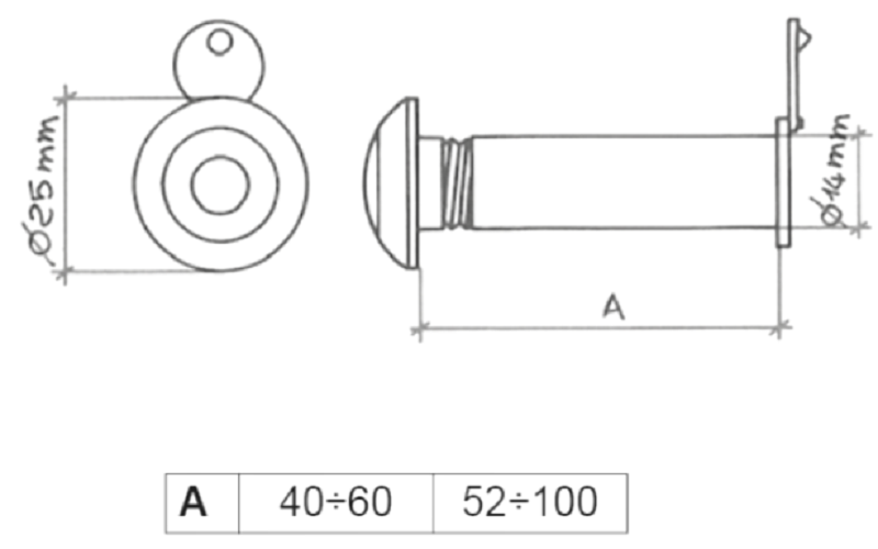 MA.CO - Spioncino SUPERVIDEO con visore ottico - col. BRONZATO - diametro Ø 14 - spessore 52 - 100 - visuale ° 180