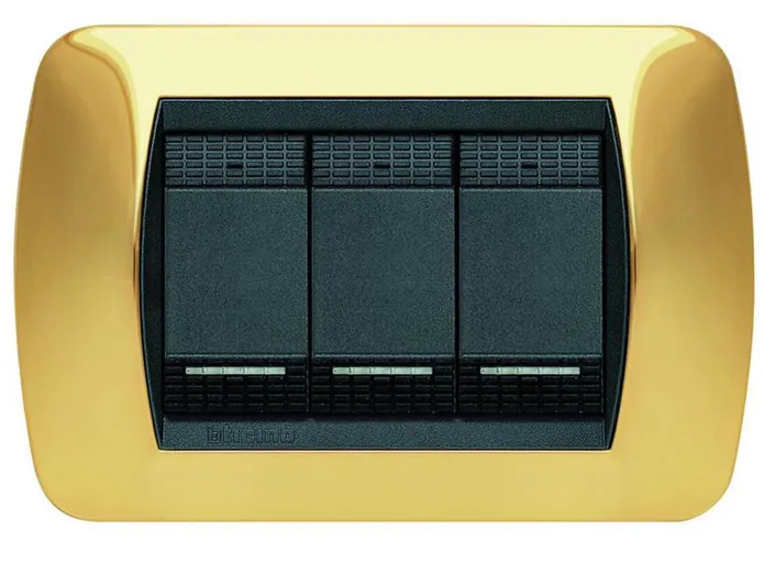 MANDELLI - Coprinterruttore LIVING con 3 fori - col. OTTONE LUCIDO - dimensioni LIVING BTICINO 137 - 3 TASTI