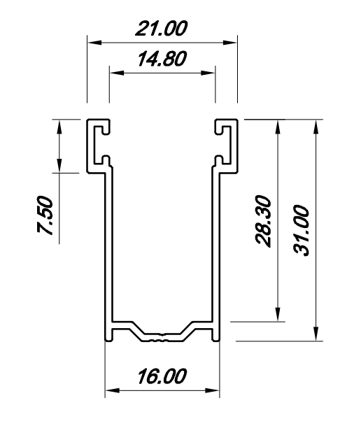 Guida A31 per avvolgibile tapparella - col. ARGENTO - lunghezza A MISURA - larg. inc 16