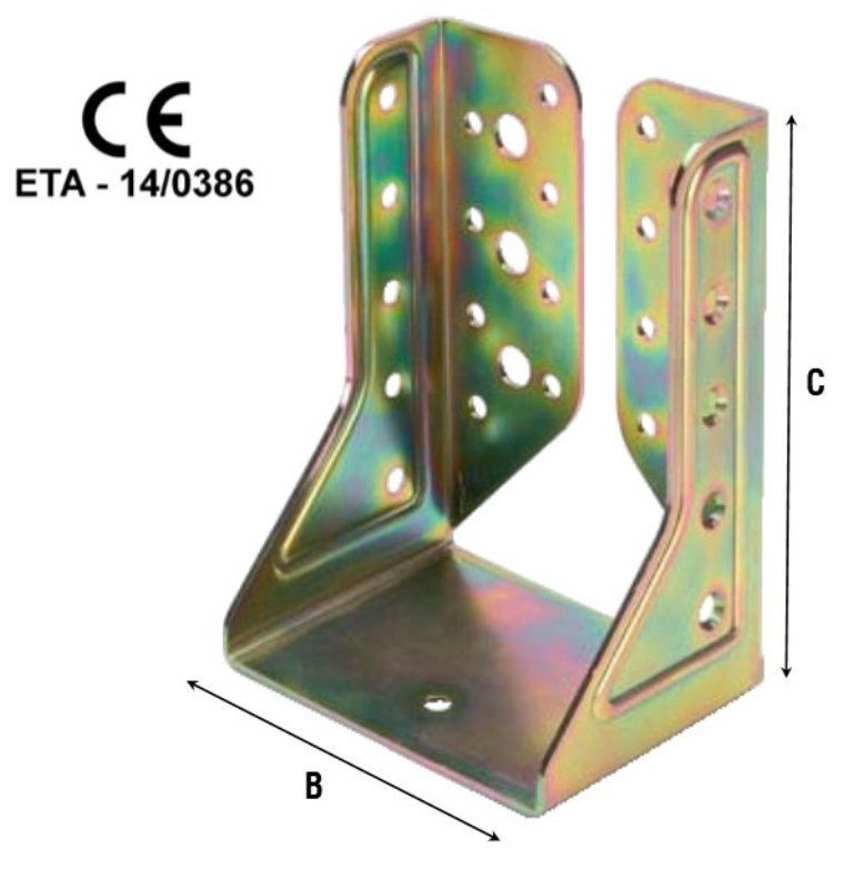 ALDEGHI - Giunzione Per Legno ART 761 fissaggio a "u" per travi inclinati - dimensioni A90 X C91 - larghezza B 90 - spessore 3
