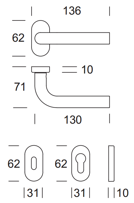 REGUITTI - Maniglia OSLO coppia con rosette e bocchette ovali senza bocchetta - mat. INOX AISI 304 - col. 5S - INOX SATINATO