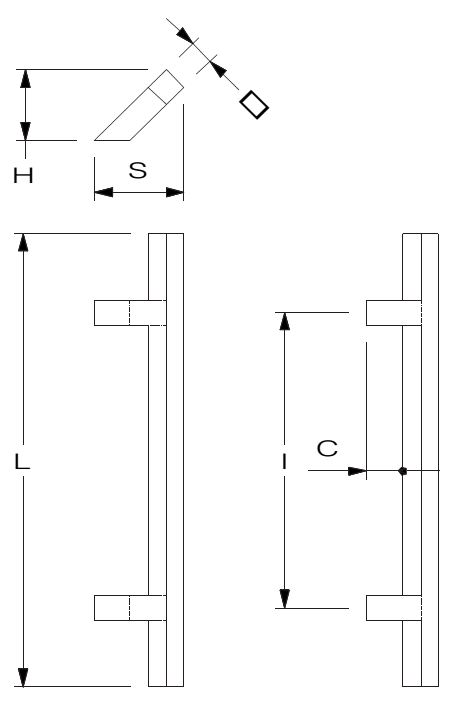 REGUITTI - Maniglione TORONTO 25 S zancato - mat. INOX AISI 304 - col. KK NERO OPACO - interasse 500 - lunghezza 660 - altezza 65 - b mm 85 - c mm 45 - diametro 25X25