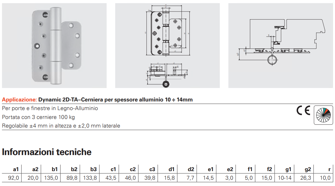 SFS INTEC - Cerniera DYNAMIC 20 2D-TA regolabile a lame sovrapposte - col. GRIGIO ARGENTO - diametro 20 - portata (kg) 125