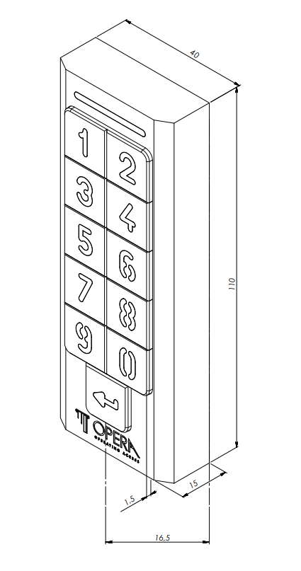 Tastiera MINILINK per accessori multipli - dimensioni LETTORI E TASTIERE PER CONTROLLO ACCESSI - info VERSIONE DA APPLICARE COLORE ARGENTO